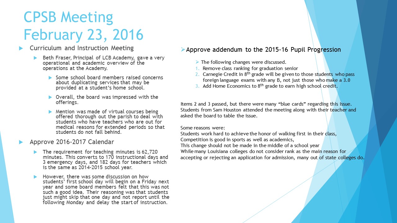 CPSB Board Meeting Info